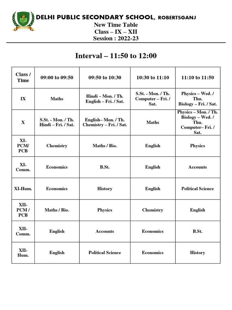 Class IX To XII Time Table 202223 PDF